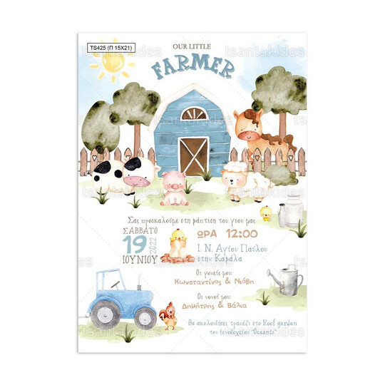 Προσκλητήριο βάπτισης παπυράκι εκτυπωμένο με θέμα Little Farmer