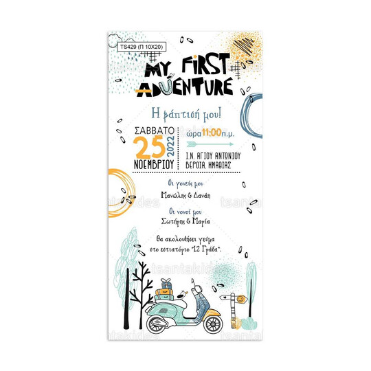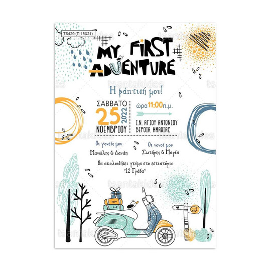 Προσκλητήριο βάπτισης παπυράκι εκτυπωμένο με θέμα Vespa Travel