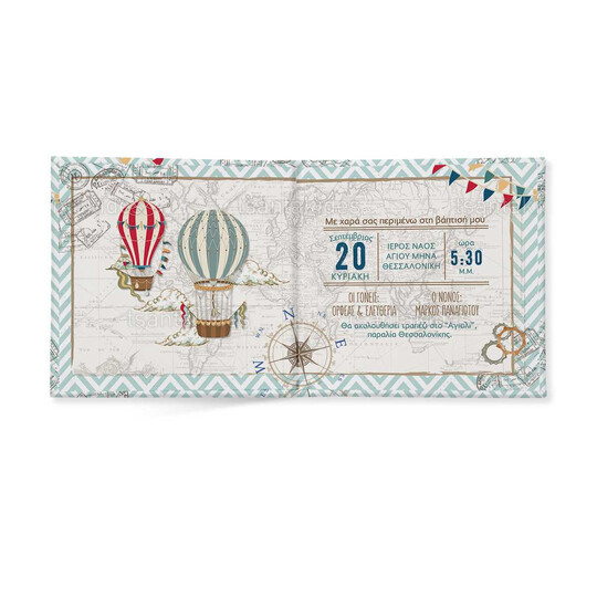 Προσκλητήριο σκληρό καπάκι, παραμυθάκι μικρό, εκτυπωμένο με θέμα το αερόστατο