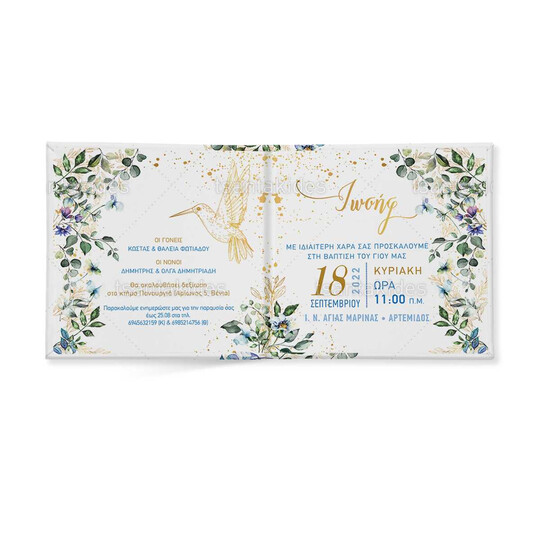 Προσκλητήριο σκληρό καπάκι, παραμυθάκι μικρό, εκτυπωμένο με θέμα Flower Colibri