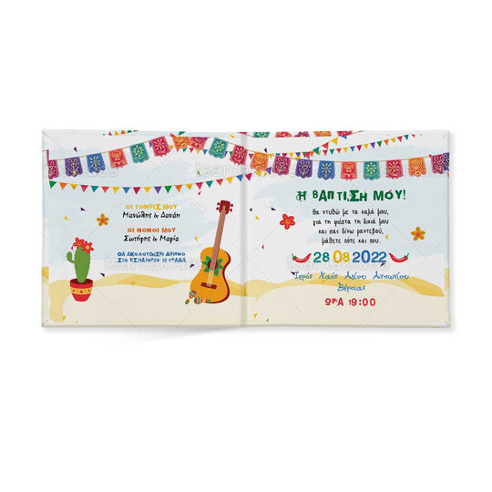 Προσκλητήριο σκληρό καπάκι, παραμυθάκι μικρό, εκτυπωμένο με θέμα Mexican Fiesta