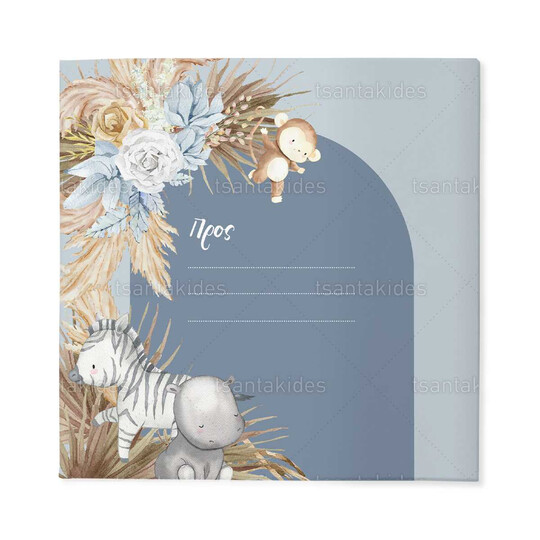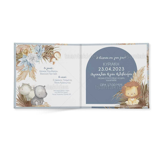 Προσκλητήριο σκληρό καπάκι,  παραμυθάκι μικρό, εκτυπωμένο με θέμα  Βοhο Jungle