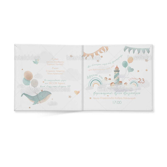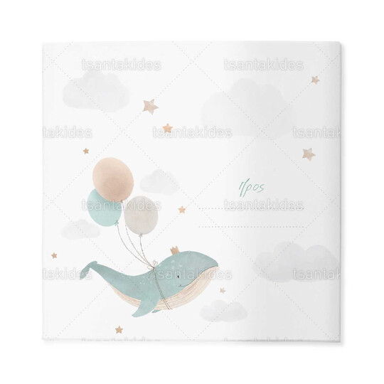 Προσκλητήριο σκληρό καπάκι, παραμυθάκι μικρό, εκτυπωμένο με θέμα Flying Whale with Balloons