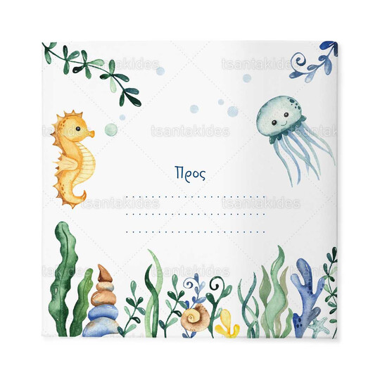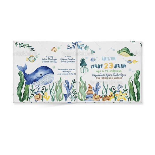 Προσκλητήριο σκληρό καπάκι, παραμυθάκι μικρό, εκτυπωμένο με θέμα Under The Sea
