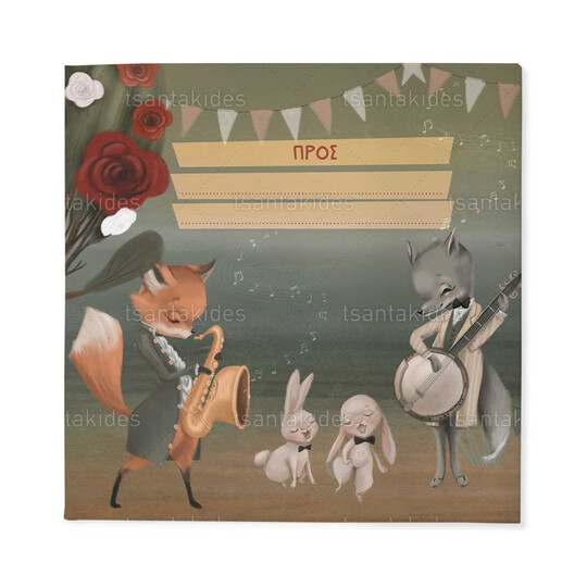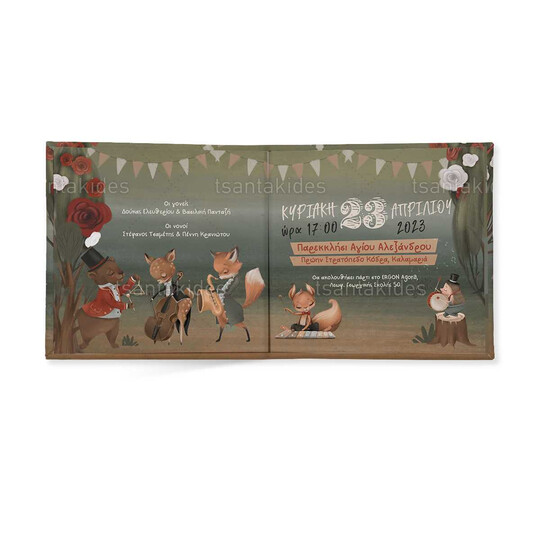 Προσκλητήριο σκληρό καπάκι, παραμυθάκι μικρό, εκτυπωμένο με θέμα Woodland Musicians
