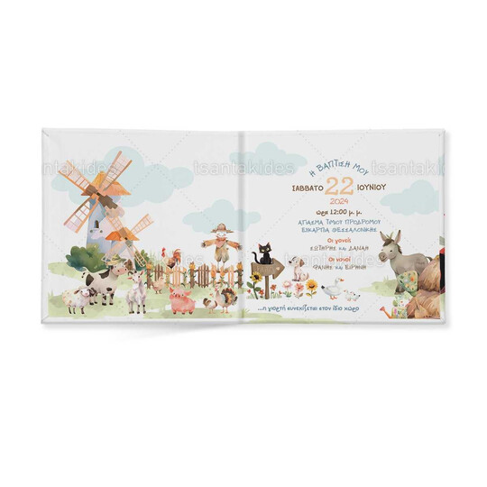 Προσκλητήριο σκληρό καπάκι, παραμυθάκι μικρό, εκτυπωμένο με θέμα Baby Little farmer