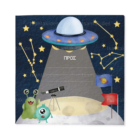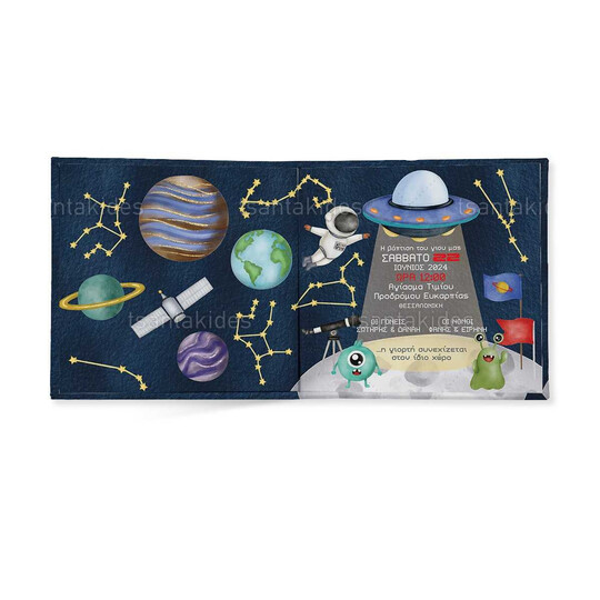 Προσκλητήριο σκληρό καπάκι, παραμυθάκι μικρό, εκτυπωμένο με θέμα Baby Out of space