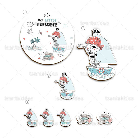 Ξύλινο σετ διακόσμησης εκτυπωμένο με θέμα τον πειρατή