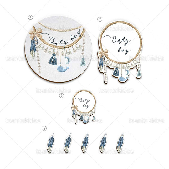 Ξύλινο σετ διακόσμησης εκτυπωμένο με θέμα boho ονειροπαγίδα