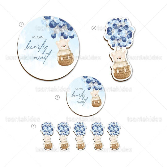Ξύλινο σετ διακόσμησης εκτυπωμένο με θέμα Bear Balloons