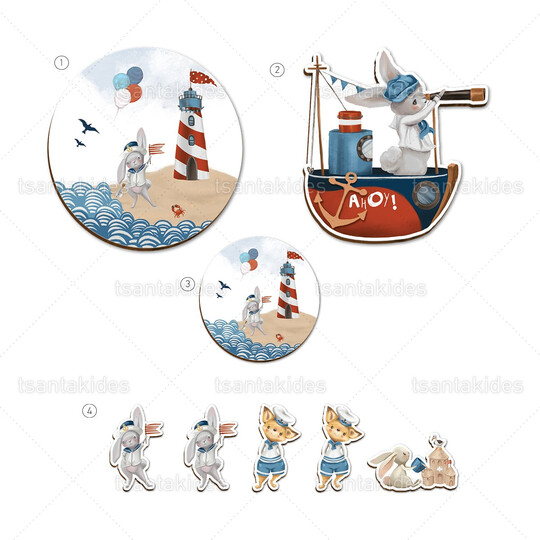 Ξύλινο σετ διακόσμησης εκτυπωμένο με θέμα Sea Adventures