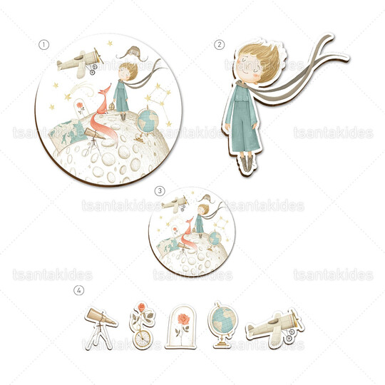 Ξύλινο σετ διακόσμησης εκτυπωμένο με θέμα Le Petit Prince