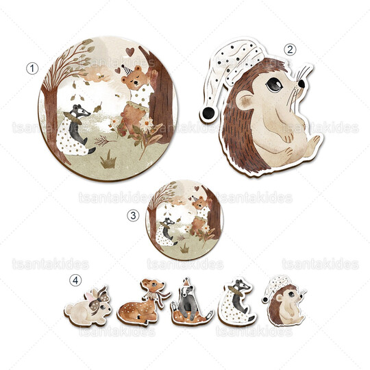 Ξύλινο σετ διακόσμησης εκτυπωμένο με θέμα Ζωάκια του δάσους