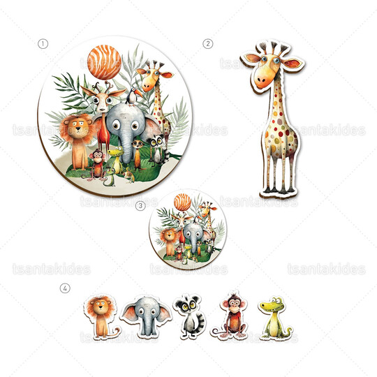 Ξύλινο σετ διακόσμησης εκτυπωμένο με θέμα Cute jungle animals