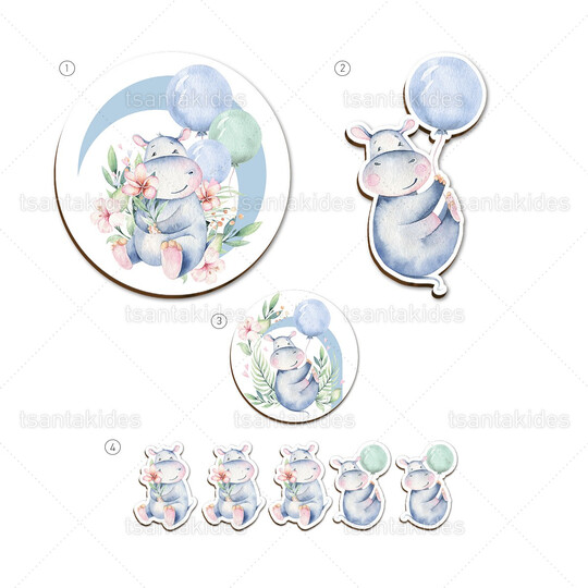 Ξύλινο σετ διακόσμησης εκτυπωμένο με θέμα Cute baby hippo
