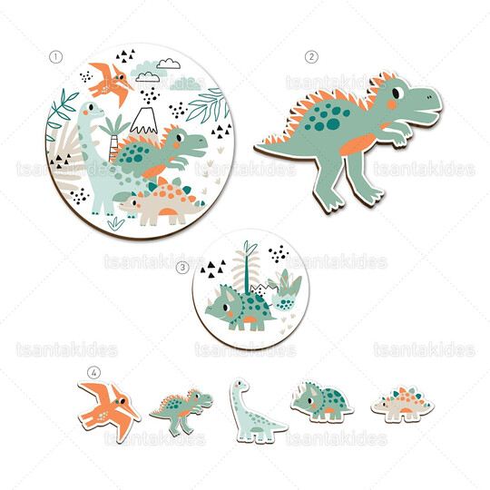 Ξύλινο σετ διακόσμησης εκτυπωμένο με θέμα Baby dinosaurs