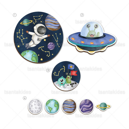 Ξύλινο σετ διακόσμησης εκτυπωμένο με θέμα Out of space