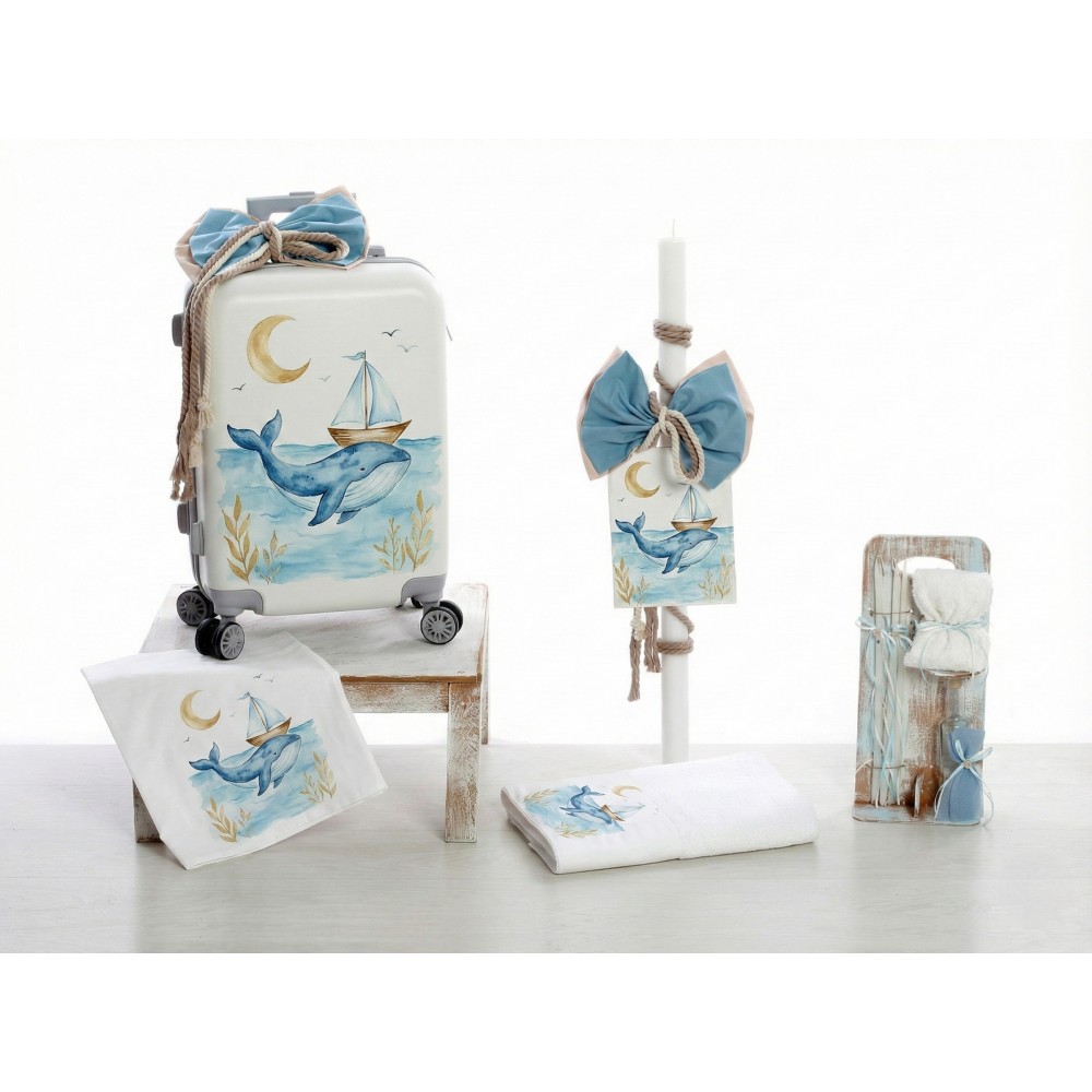 Σετ Βάπτισης Με Βαλίτσα "Watercolor Whale & Boat"
