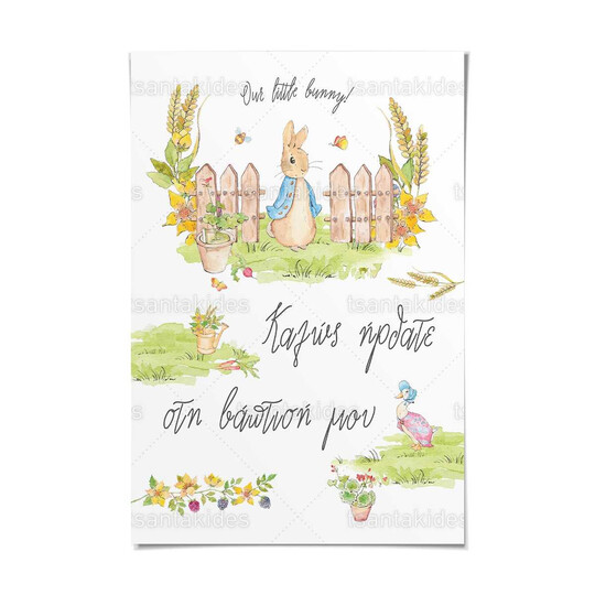 Καρτολίνο βάπτισης εκτυπωμένο με θέμα Peter Rabbit