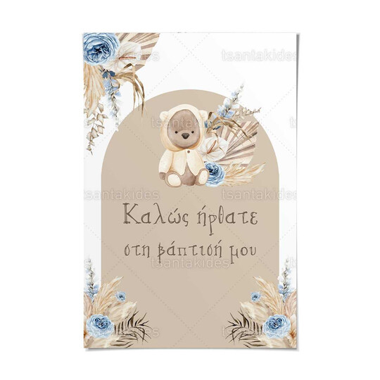 Καρτολίνο βάπτισης εκτυπωμένο με θέμα Boho Teddy Bear