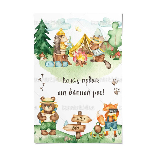 Καρτολίνο βάπτισης εκτυπωμένο με θέμα Camping Animals