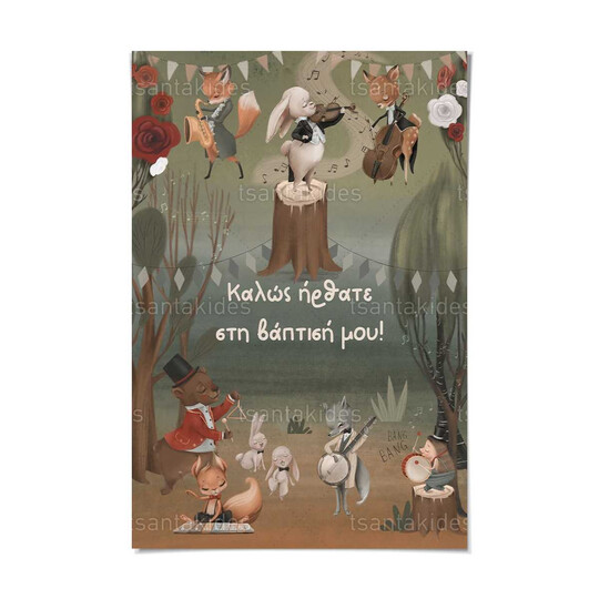 Καρτολίνο βάπτισης εκτυπωμένο με θέμα Woodland Musicians