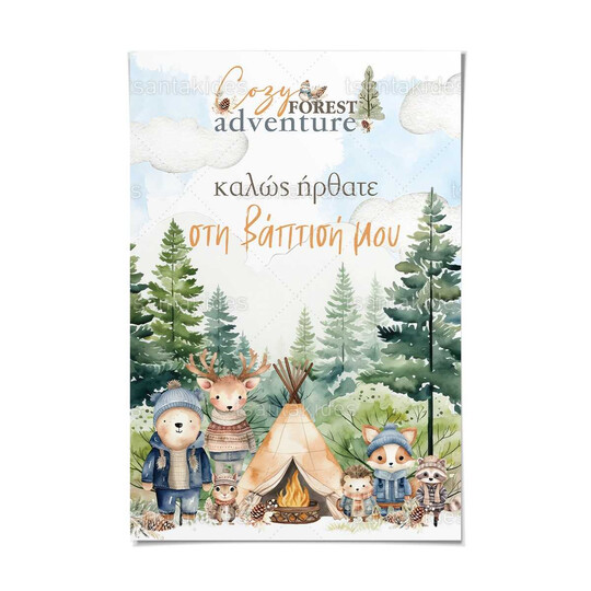 Καρτολίνο βάπτισης εκτυπωμένο με θέμα Forest adventure