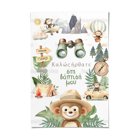 Καρτολίνο βάπτισης εκτυπωμένο με θέμα Jungle monkey adventure