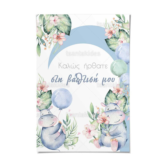 Καρτολίνο βάπτισης εκτυπωμένο με θέμα Cute baby hippo