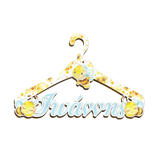 Ξύλινη παιδική κρεμάστρα εκτυπωμένη με θέμα τη μέλισσα