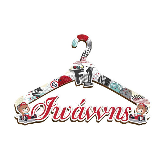 Ξύλινη παιδική κρεμάστρα εκτυπωμένη με θέμα τη φόρμουλα 1