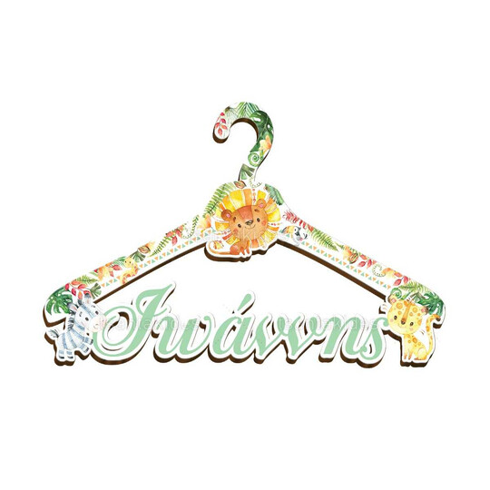 Ξύλινη παιδική κρεμάστρα εκτυπωμένη με θέμα τα μικρά ζώα της ζούγκλας
