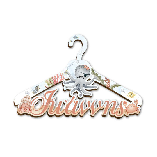 Ξύλινη παιδική κρεμάστρα εκτυπωμένη με θέμα Under the sea pirate