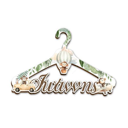 Ξύλινη παιδική κρεμάστρα εκτυπωμένη με θέμα Jungle monkey adventure
