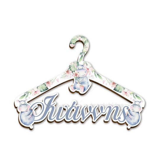 Ξύλινη παιδική κρεμάστρα εκτυπωμένη με θέμα Cute baby hippo