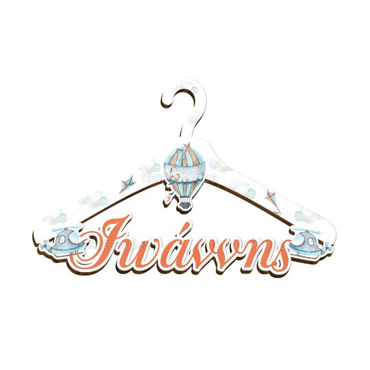 Ξύλινη παιδική κρεμάστρα εκτυπωμένη με θέμα Travel Boy
