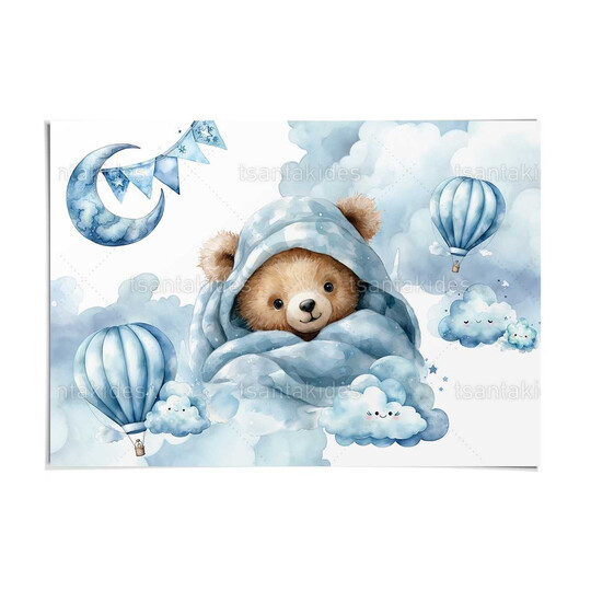 Χαρτινό σουπλά βάπτισης εκτυπωμένο με θέμα Teddy Bear touch the sky