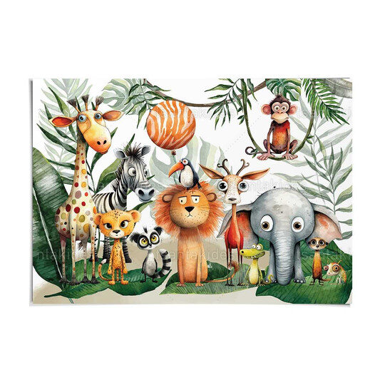 Χαρτινό σουπλά βάπτισης εκτυπωμένο με θέμα Cute jungle animals