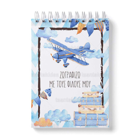 Παιδική μπομπονιέρα βάπτισης μπλοκάκι ζωγραφικής εκτυπωμένο με θέμα Αεροπλανάκι.