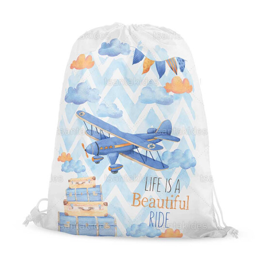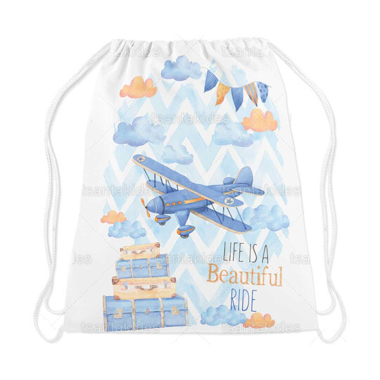 Υφασμάτινο σακιδιο πλατης εκτυπωμένο με θέμα travel και αεροπλανάκι