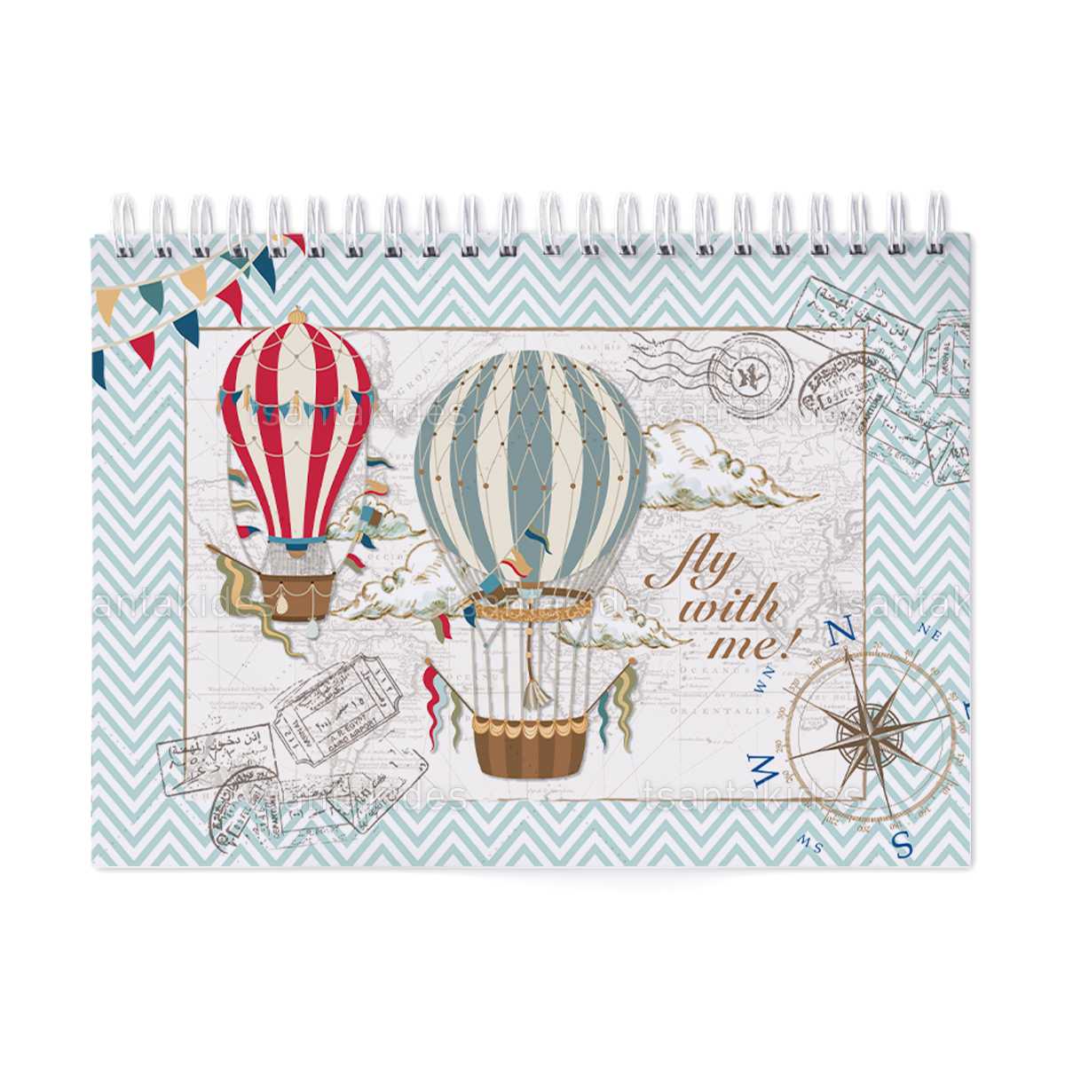 Παιδική μπομπονιέρα βάπτισης μπλοκ ζωγραφικής με διάσταση 21x29cm, εκτυπωμένο με θέμα Αερόστατο.
