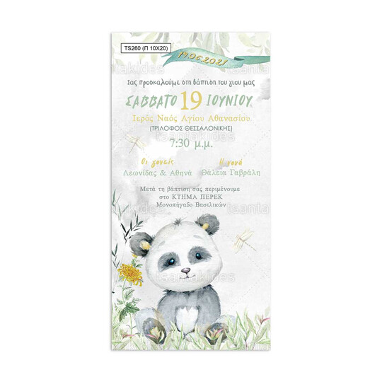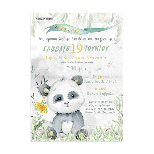 Προσκλητήριο βάπτισης παπυράκι εκτυπωμένο με θέμα panda