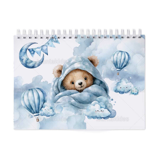 Παιδική μπομπονιέρα βάπτισης μπλοκ ζωγραφικής με διάσταση 21x29cm, εκτυπωμένο με θέμα Teddy Bear Touch The sky.