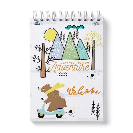 Παιδική μπομπονιέρα βάπτισης μπλοκάκι ζωγραφικής εκτυπωμένο με θέμα Αρκούδος Σε Βέσπα.