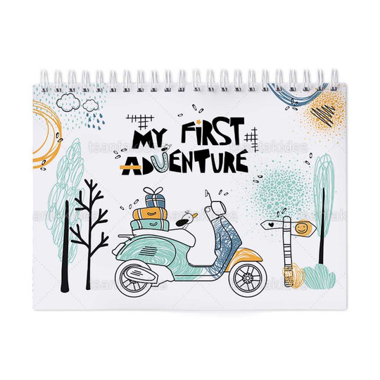 Παιδική μπομπονιέρα βάπτισης μπλοκ ζωγραφικής με διάσταση 21x29cm, εκτυπωμένο με θέμα Vespa Travel.