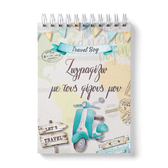 Παιδική μπομπονιέρα βάπτισης μπλοκάκι ζωγραφικής εκτυπωμένο με θέμα Βέσπα.