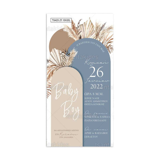 Προσκλητήριο βάπτισης παπυράκι εκτυπωμένο με θέμα Boho Baby Boy