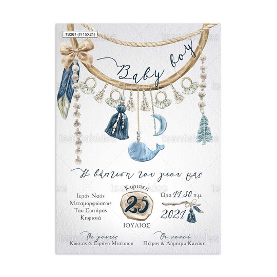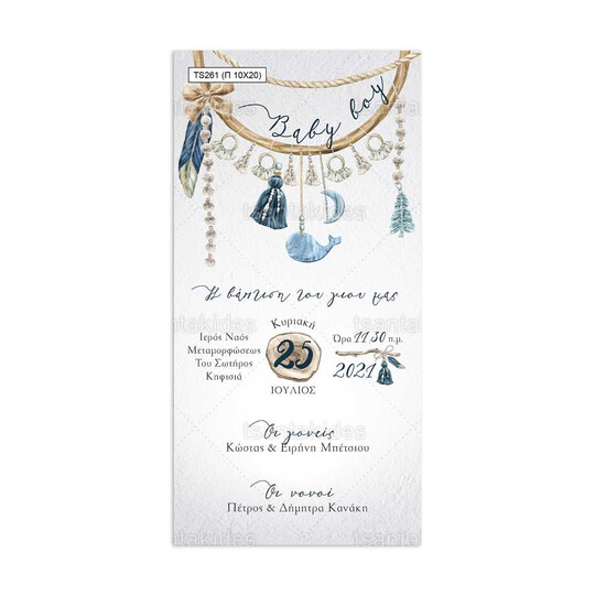Προσκλητήριο βάπτισης παπυράκι εκτυπωμένο με θέμα boho ονειροπαγίδα