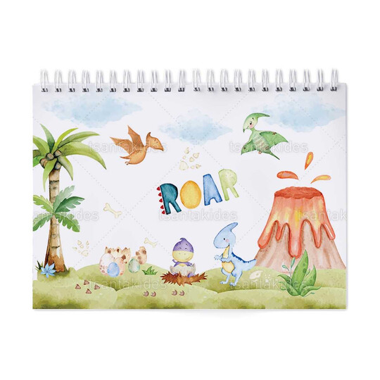 Παιδική μπομπονιέρα βάπτισης μπλοκ ζωγραφικής με διάσταση 21x29cm, εκτυπωμένο με θέμα Δεινόσαυροι.