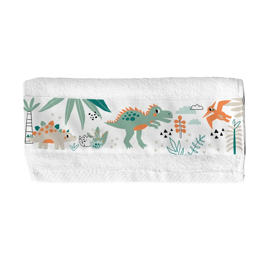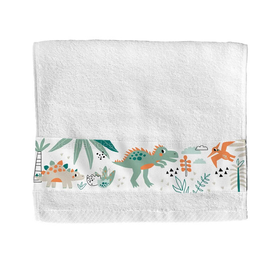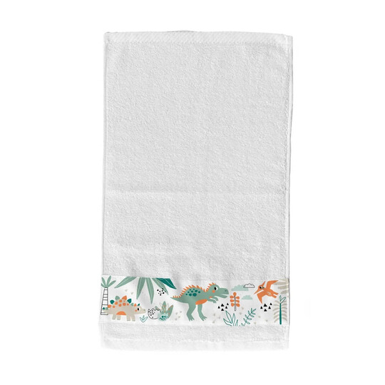 Παιδική μπομπονιέρα βάπτισης για αγόρι λευκή βαμβακερή πετσέτα με υφασμάτινη φάσα εκτυπωμένη.